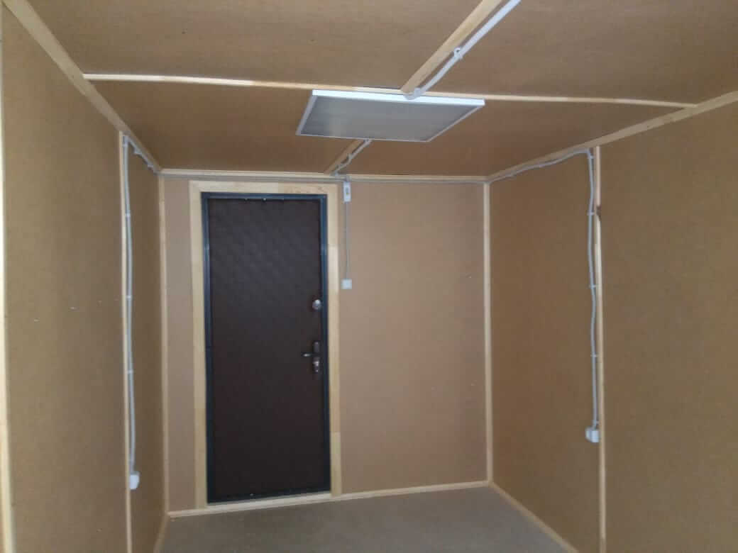 Металлическая бытовка с кухней в тамбуре 5,85 x 2,4 - Оргалит ДВП