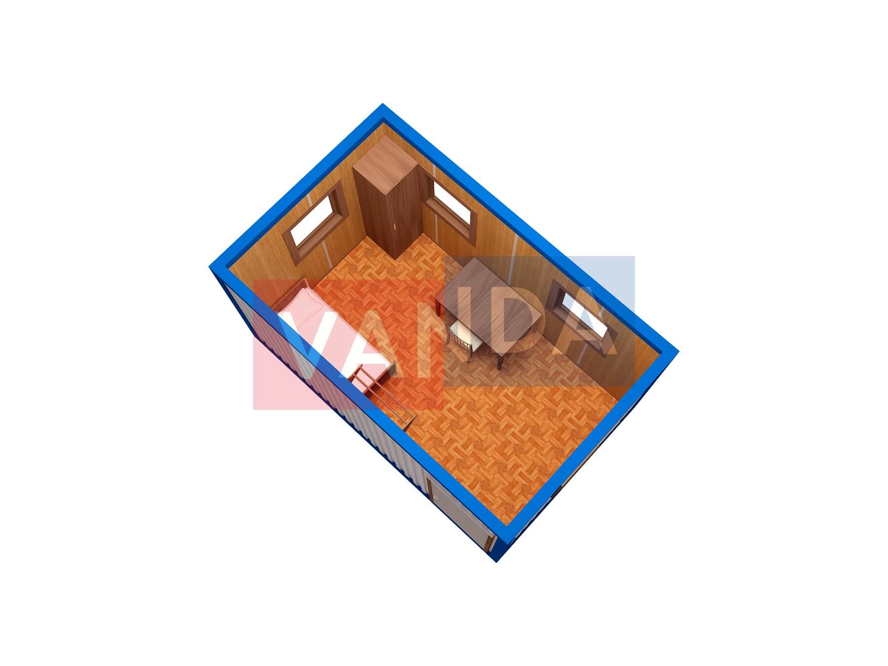 Металлическая бытовка без тамбура 5,85 x 2,4 - Оргалит ДВП